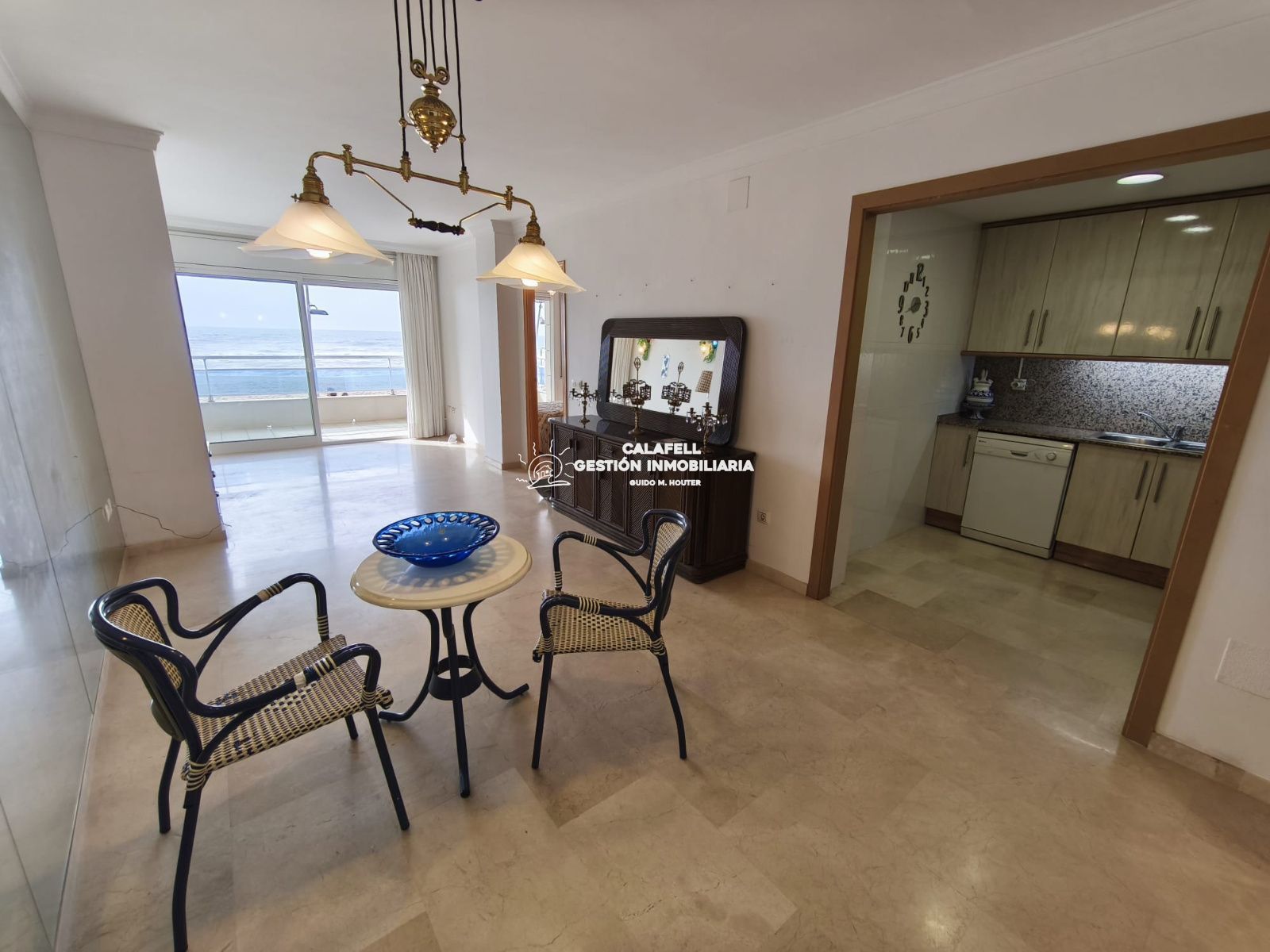 Salon comedor con salida directa a amplia terraza frontal al mar.
