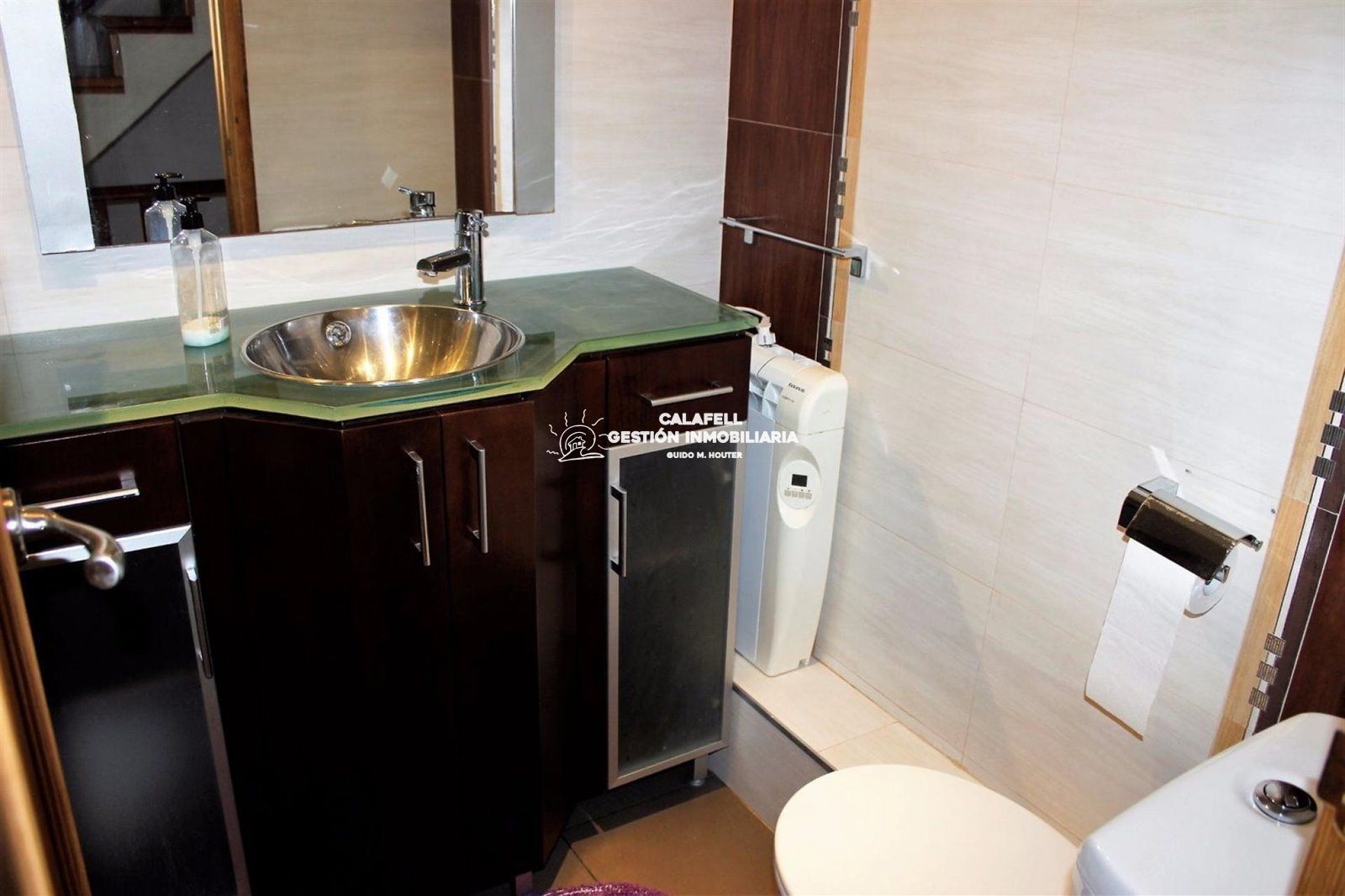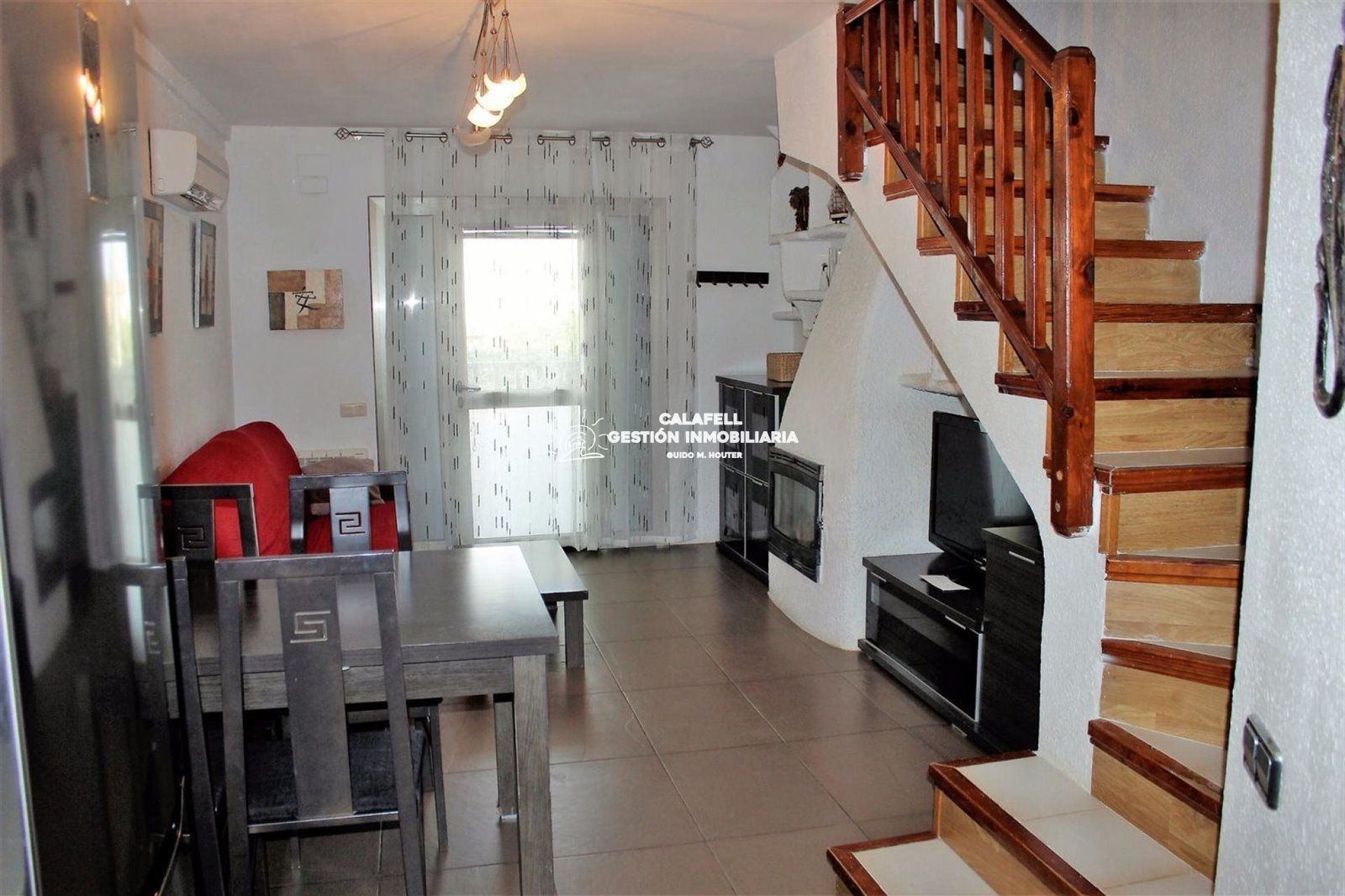 Preciosa casa adosada de estilo ibicenco en la urbanización Sant Jordi (Torredembarra), muy luminosa y lista para entrar a vivir. La vivienda dispone de 3 habitaciones, dos dobles y una individual, 1 baño completo y 1 aseo. Cuenta con suelo de gres, amplio salón-comedor con chimenea y cocina office de 16 m², totalmente equipada con nevera, lavadora, lavavajillas y microondas...Está equipada con aire acondicionado, calefacción eléctrica, cerramientos de doble acristalamiento, armarios empotrados, puerta de seguridad y antena parabólica comunitaria...En el exterior dispone de dos terrazas, una de 6 m² y otra de 10 m², ideal para colocar mesa con cuatro sillas y pérgola, perfectas para disfrutar del clima mediterráneo...Garaje con puerta automatizada para un coche...Ubicada en una cuidada urbanización con piscina y jardín comunitarios, en una zona tranquila y bien comunicada de Torredembarra, ideal tanto como residencia habitual como segunda vivienda...SE VENDE CON LICENCIA TURISTICA.