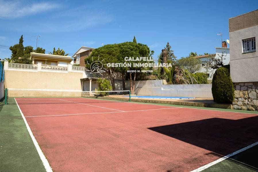 Magnifica Casa unifamiliar de 328m2 construidos en parcela de 1.051m2. Situada en la prestigiosa Urbanización de Mas-Mel de Calafell, a 500m de la playa, cerca de zonas comerciales y colegios.. . La Casa consta de dos plantas distribuidas en:. Pl. Baja: amplia sala de juegos, habitación-despacho, baño, amplia bodega-sala de reuniones, trastero y garaje para 2- 3 coches.. . 1ª Planta: recibidor, amplio salón-comedor, sala de estar con chimenea, cocina independiente, lavadero, 4 habitaciones dobles, 2 baños y 2 terrazas (una de 20m2).. . Magnifico jardín privado con pista de tenis, piscina privada y zona ajardinada. EXPECTACULAR !!!!!!. . Muy soleada y con vistas panorámicas a la ciudad.. . VISITELA................